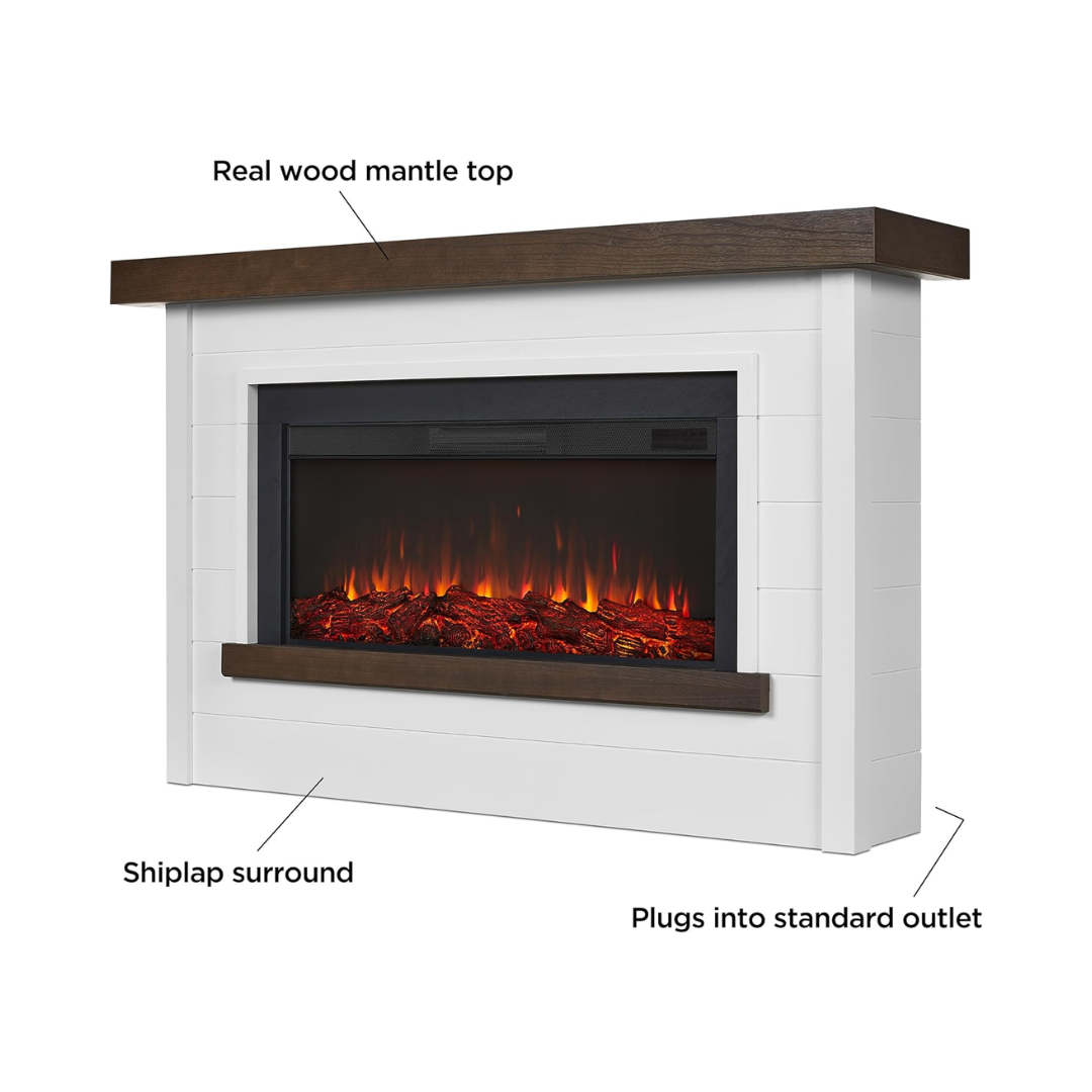 Furniture-quality craftsmanship Clean shiplap lines with natural wood-grain texture and a spacious mantel for styling. This isn't an appliance—it's a focal point.