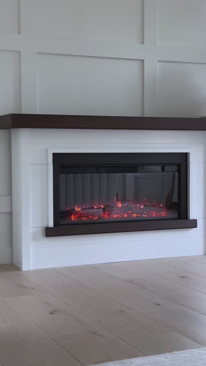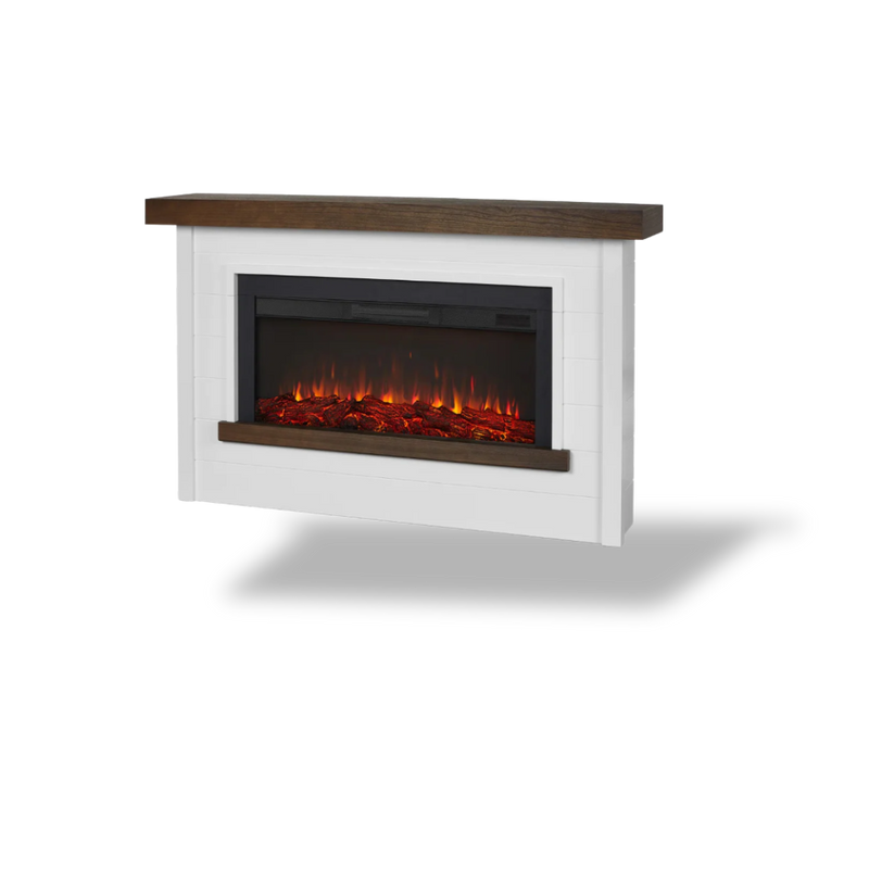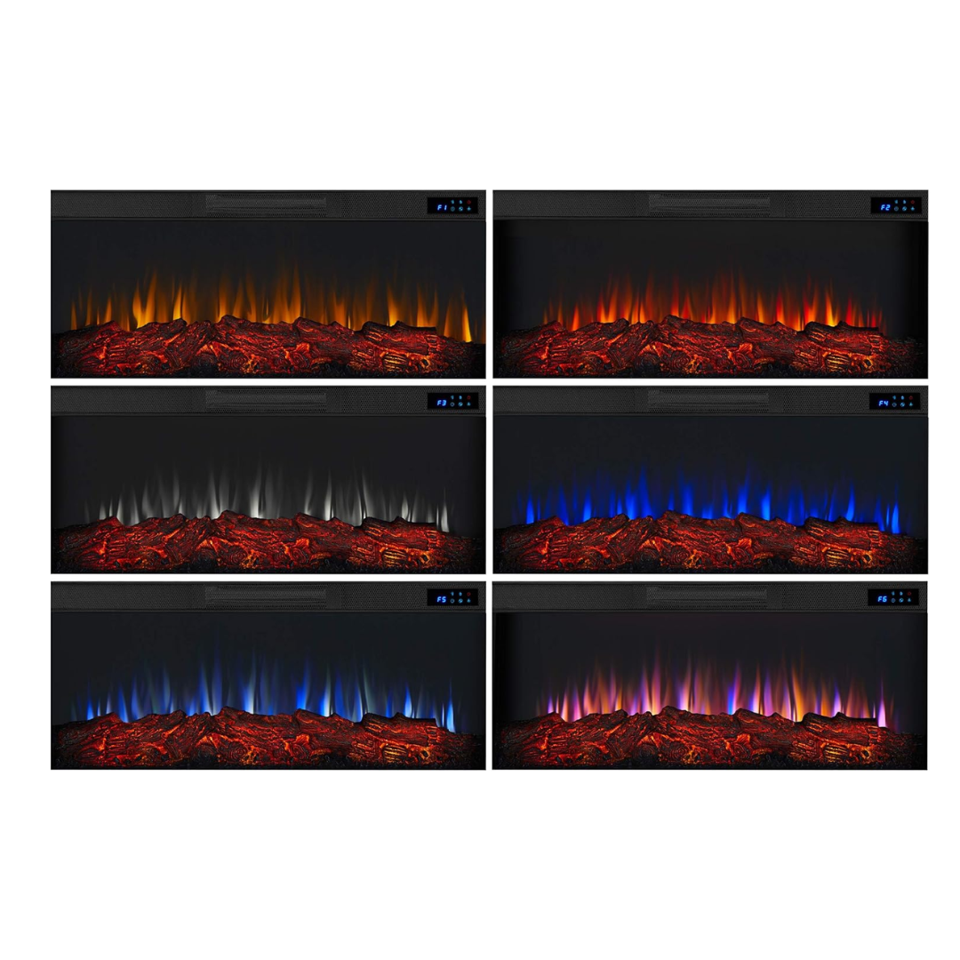 Add warmth and style to your living space with this elegant widescreen electric fireplace. Its realistic LED flames offer six color options and five brightness levels, creating a cozy glow without the need for vents or chimneys. Perfect for rooms up to 1,000 sq. ft., it features adjustable thermostat settings, a safety shut-off, and a timer for effortless comfort. The matte, plaster-inspired surround and real wood mantel bring a sophisticated touch to any modern home or office.