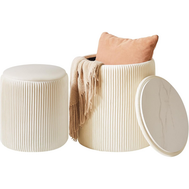 Each ottoman features spacious internal storage, ideal for organizing books, throws, accessories, and other daily essentials. The smaller ottoman can nest inside the larger one when not in use, saving space while keeping your area tidy.