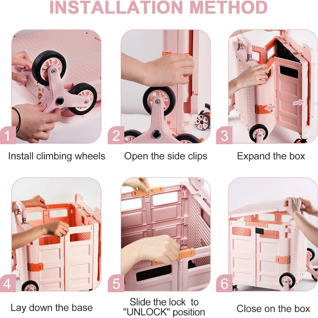 Folding Portable Rolling Crate Handcart – Heavy Duty Collapsible Basket