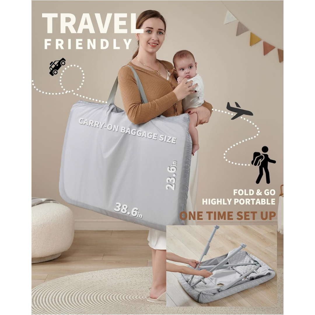 Includes a 3D fleece mattress with soft snuggle dots for a plush, baby-friendly feel. The dual mesh sidewalls promote airflow and visibility, helping your little one sleep cool and calm while you keep an eye on them with ease.