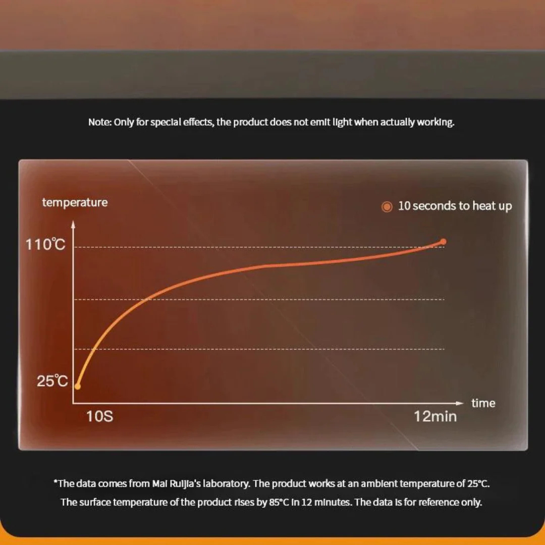• Rapid heat-up and long-lasting warmth with 3 adjustable temperature settings (140–212 °F).