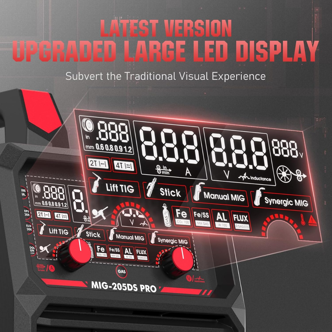 The MIG-205DS PRO is a high-performance 5-in-1 welding machine designed for precision and efficiency. Equipped with advanced IGBT inverter technology and a digital display, this welder ensures smooth and reliable operation. Whether you're working with MIG, TIG, stick welding, or flux core, this machine delivers excellent results for both professionals and beginners.