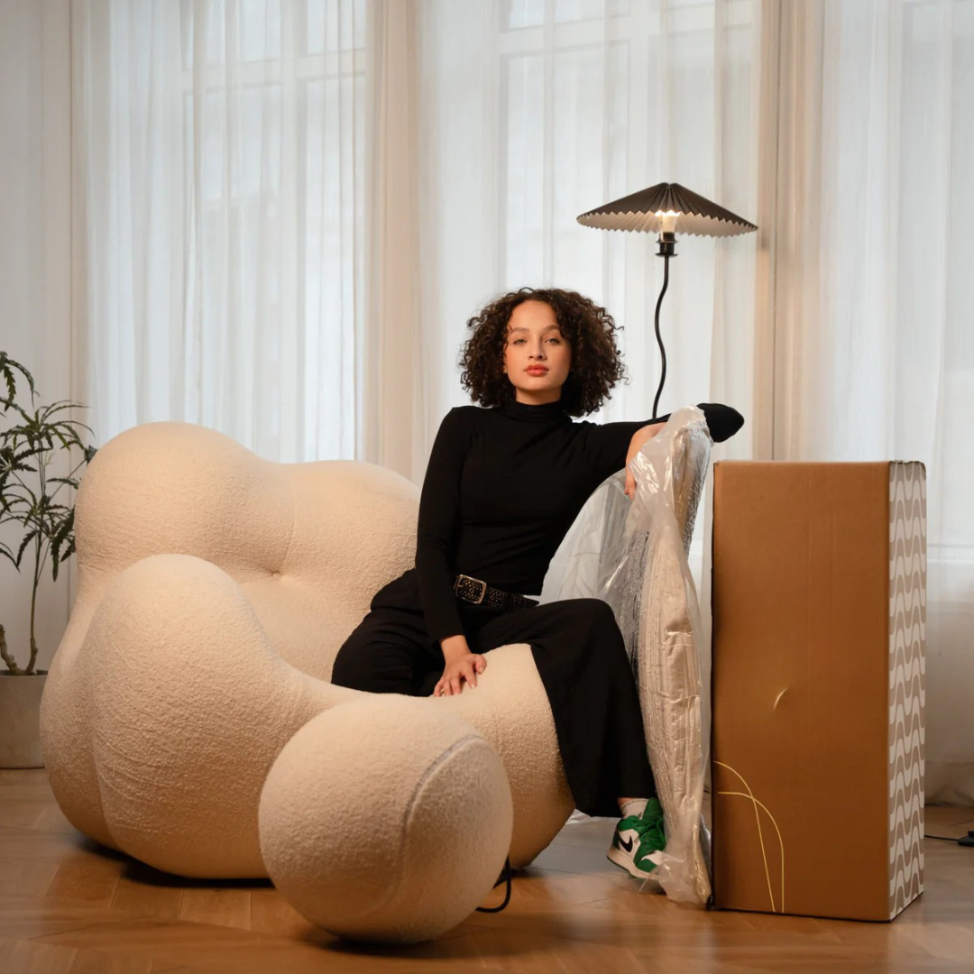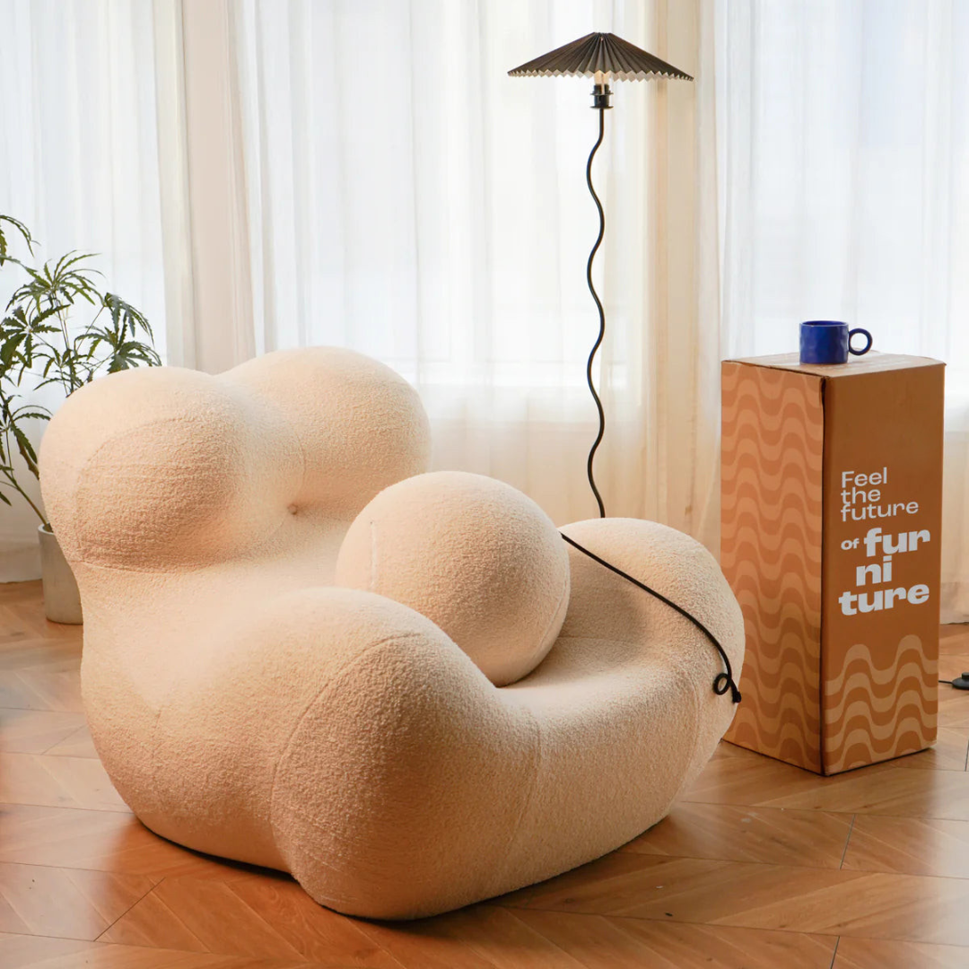 Upgrade your space with The Modern Lazy Lounge, a statement piece that blends sophisticated design and unmatched comfort. With its rounded, sculptural silhouette and luxurious materials, this chair is perfect for those who appreciate style without sacrificing relaxation. Whether placed in a living room, bedroom, or office, it adds a modern, cozy touch to any environment.
